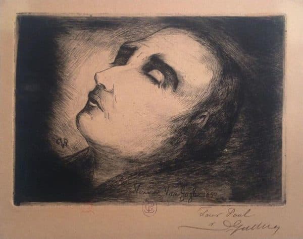 Paul Gachet [Paul van Ryssel] Vincent van Gogh on his Deathbed 1890 Drypoint etching 6.5 x 4.75 inches