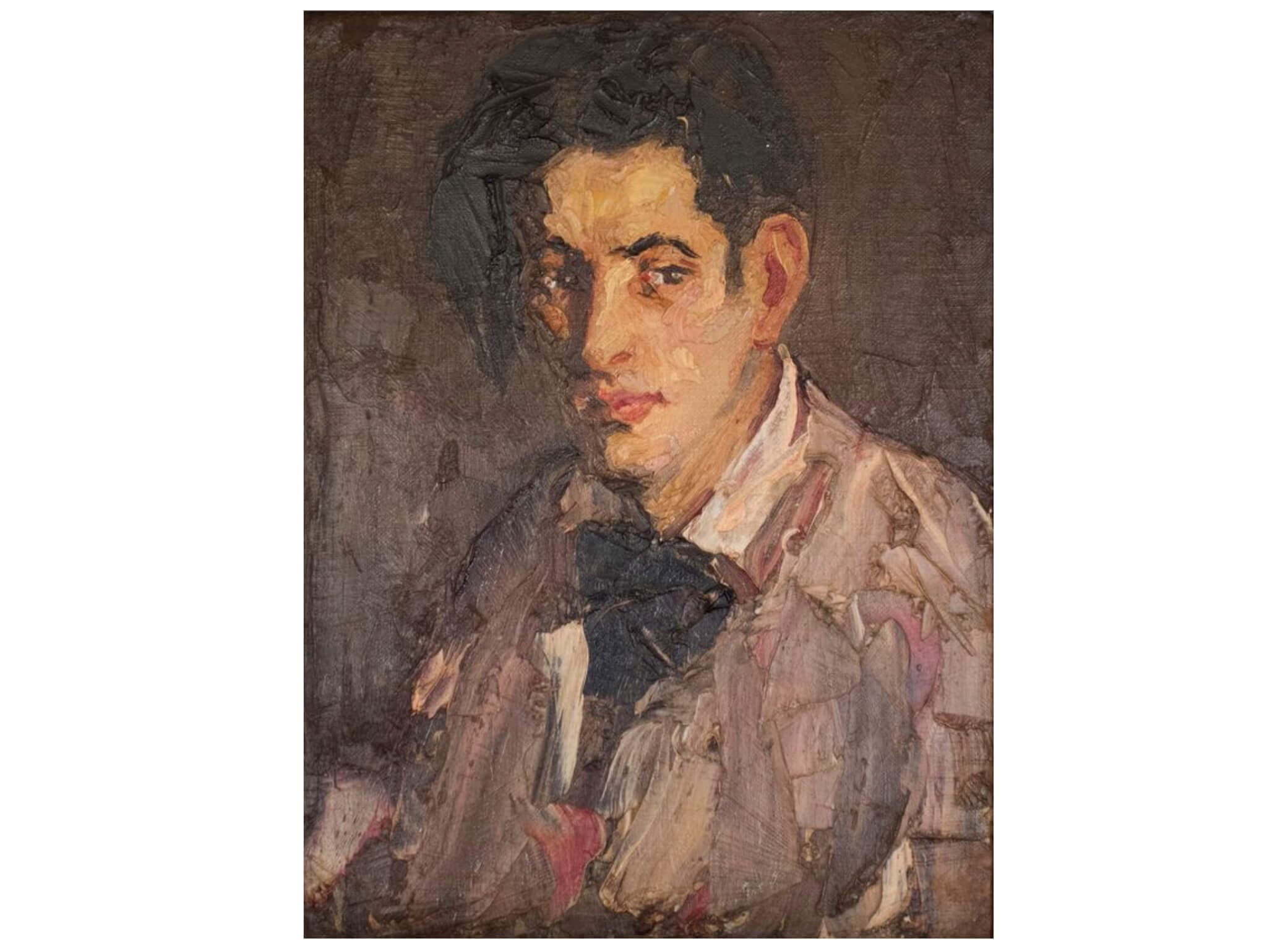 Along the Charles River, Watertown’s thriving manufacturing industry promised opportunity for immigrants and became a developed community for those fleeing the Armenian Genocide. In 1920, Arshile Gorky, still referred to by his birth name Vostanik Manoug Adoian, arrived in the US with his sister Vartoosh Mooradian and settled in Watertown, reconnecting with relatives. Straying from societal norms and the expectations of his family, Gorky was dissatisfied with factory work and wanted to pursue a career as an artist. He achieved his dream by enrolling in classes at the newly founded New England School of Art and studying the old masters at the Museums of Fine Arts, Boston. His earliest models included friends, family, and himself, as demonstrated in Self-Portrait (1923–24), an early surviving work painted in Watertown. The artist rendered himself in a subdued palette, emphasizing texture through thick, layered brushstrokes across his jacket and shirt collar, while sweeping, gestural marks articulate facial features such as the bridge of his nose. His averted gaze evokes a sense of introspection. From his formative stages, the artist demonstrated a technical command of the medium.