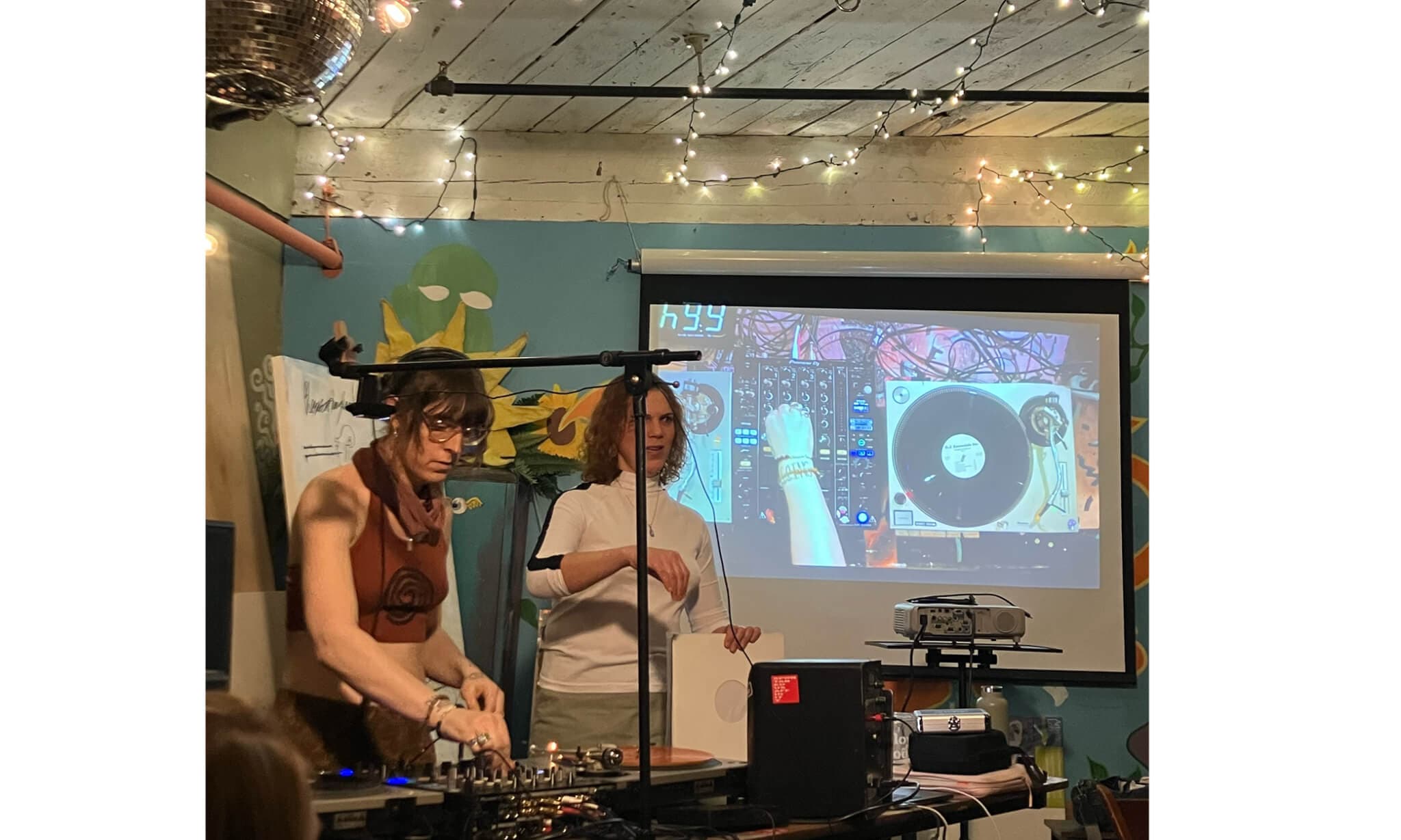 Octo Octa and Eris Drew of T4T LUV NRG lead a vinyl workshop hosted by Mx. Blaire, February 2025. Photo by Jameson Johnson.