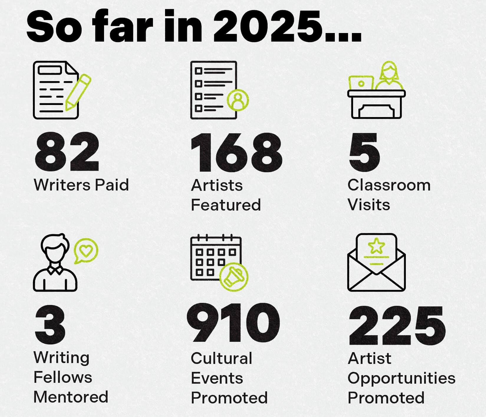 Regional art publications play powerful roles in elevating narratives and shaping perceptions about place, politics, and history. With our biannual print publication, digital editorial content, weekly curated arts calendar, and civic partnerships, we provide an essential platform for artists, writers, and cultural spaces to have their work amplified, contextualized, and placed within a broader contemporary art dialogue. Through our mentorship programs, we train the next generation to develop new modes of thoughtful storytelling that elevates the work of artists across disciplines.